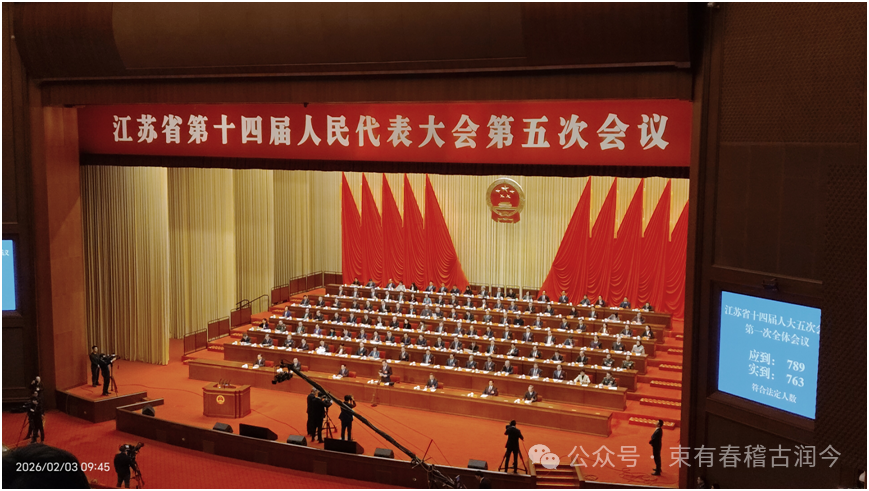 2026年2月3日上午,江苏省第十四届人民代表大会第五次会议在江苏大会堂隆重举行,我十分荣幸地列席了会议。大会由中共江苏省委书记、省人大主任信长星主持,省长刘小涛向大会作了《政府工作报告》。