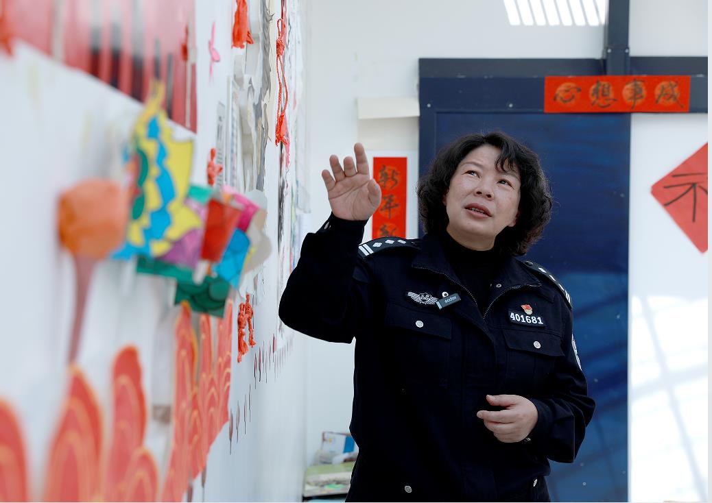 52岁的耿洁自掏腰包,置办了笔墨纸砚和手工彩纸;在监室的白墙上,留出了一面“心灵驿站”的文化墙,让所有人都参与画画、写字、做手工等。培养她们的兴趣爱好,形成互帮互助的良好氛围。