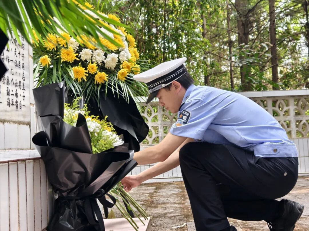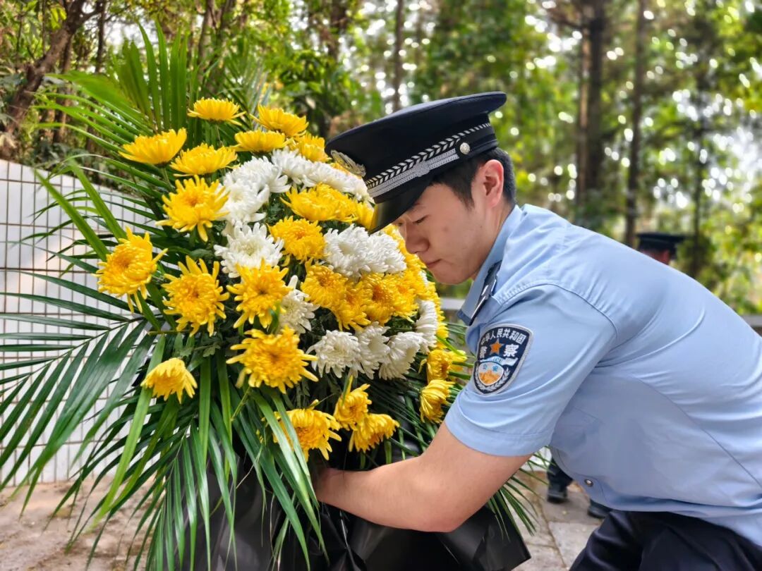 清扫完毕,大家整装列队,肃立在烈士纪念碑前,聆听施翔宁烈士事迹宣讲,重温入警誓词,并依次上前敬献鲜花、鞠躬致敬。素花一束,承载着勐海公安对英烈的深切缅怀,凝聚着全体民辅警传承英烈之志的坚定决心。