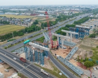 江阴靖江长江隧道北接线工程 跨京沪高速靖江互通首吊成功