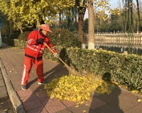 落叶季,环卫“人机”结合清扫忙